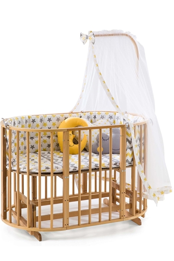 Ahşap Beşik Anne Yanı Beşik Organik 60x120 - Sarı Yıldız 3...