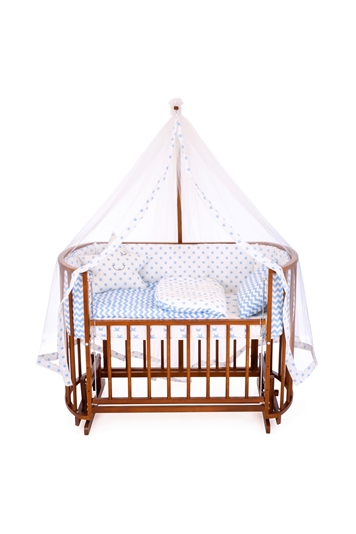Ahşap Beşik Anne Yanı Beşik Ceviz 60x120 Mavi Yıldız Uyku Seti...