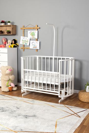 Ahşap Beşik Anne Yanı Beşik PAPATYA Beyaz 60x120 - Uyku Setsiz...