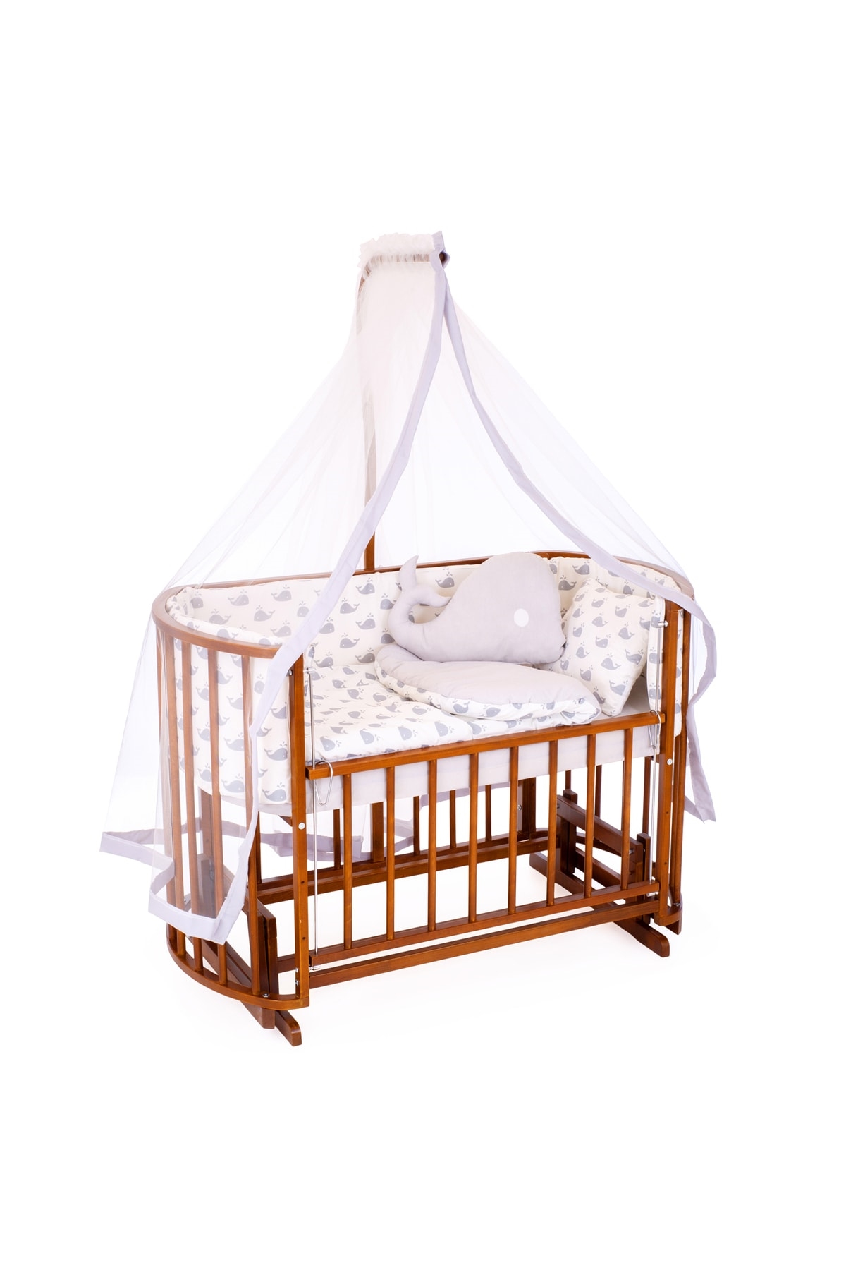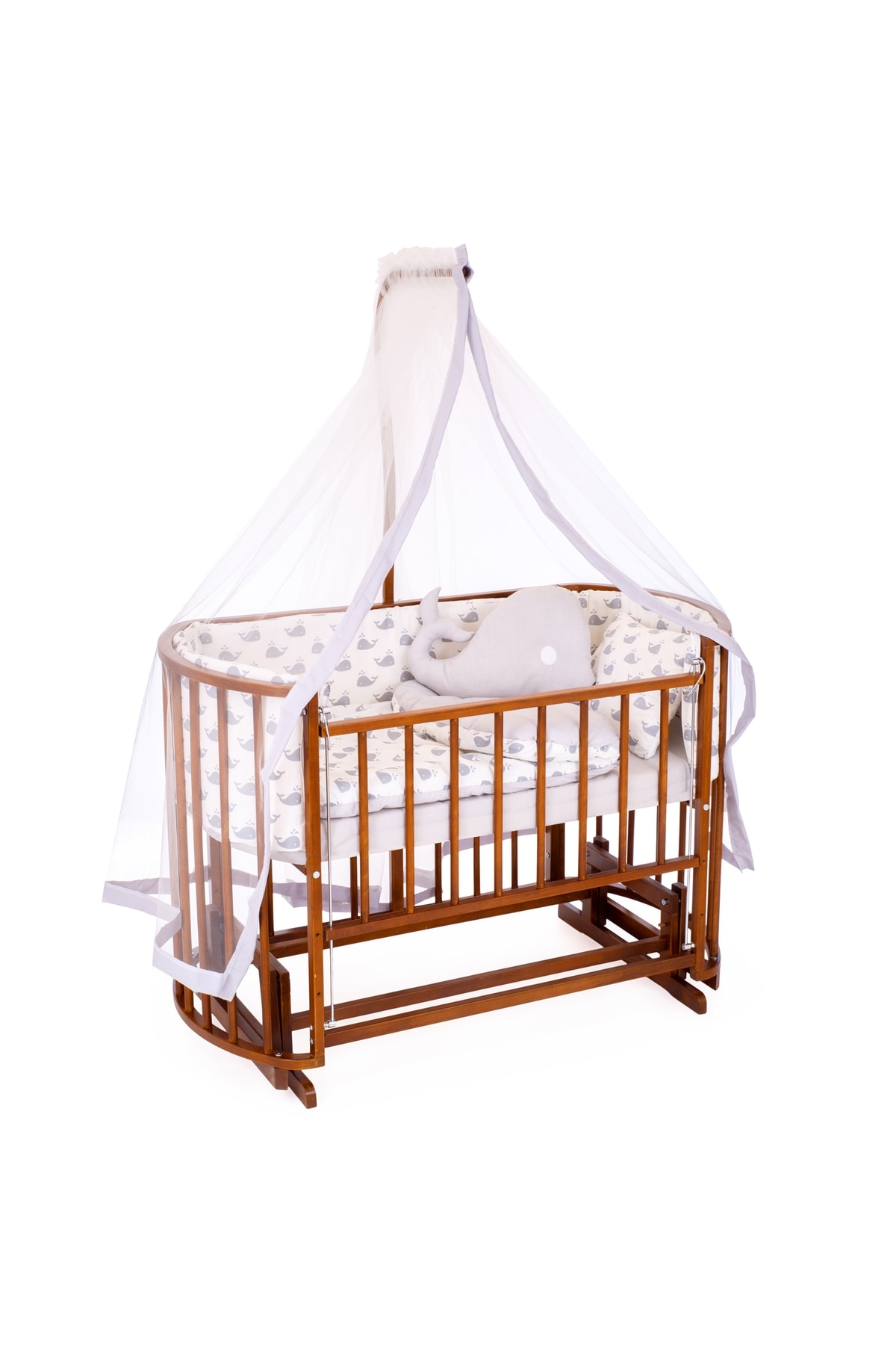 Ahşap Beşik Anne Yanı Beşik Ceviz 60x120 Gri Balina Uyku Seti Yatak