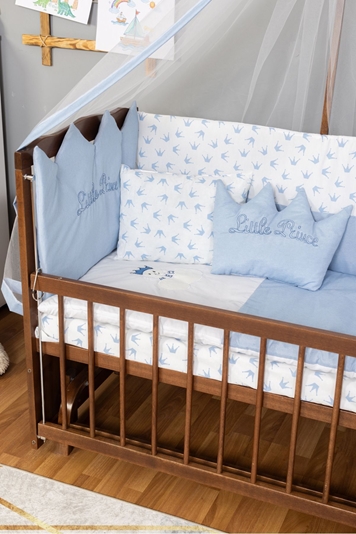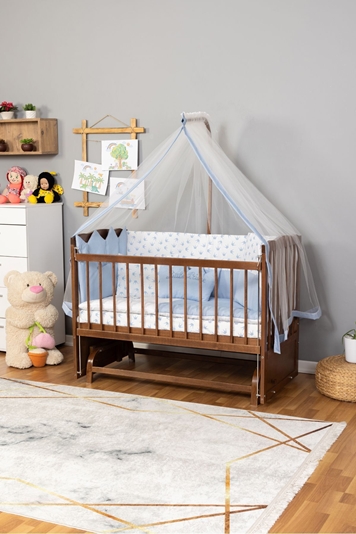 Ahşap Bebek Beşik Anne Yanı Beşik Ceviz 60x120 Mavi Prens (ERKEK) Uyku Seti Yatak