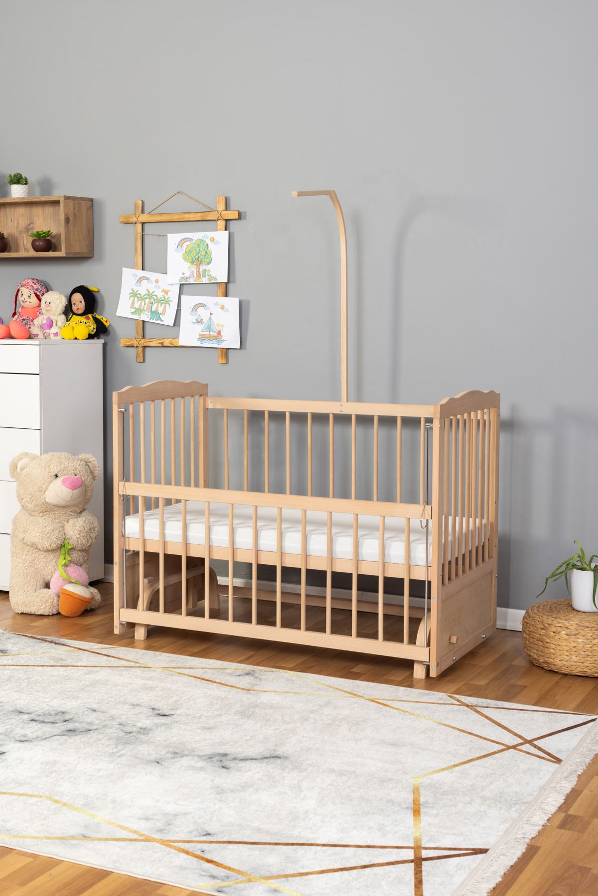 60x120 cm ölçüsüyle geniş kullanım alanı 3 kademeli yükseklik ayarı sayesinde bebeğiniz büyüdükçe yatağı kolayca uyarlayabilirsiniz Dayanıklı yapısı ile uzun yıllar güvenle kullanabileceğiniz bir beşik