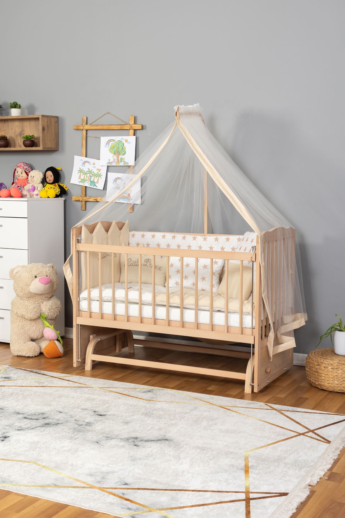 Ahşap Beşik Anne Yanı Beşik Organik (BOYASIZ) 60x120 - Krem Prens (ERKEK) Uyku Seti Yatak