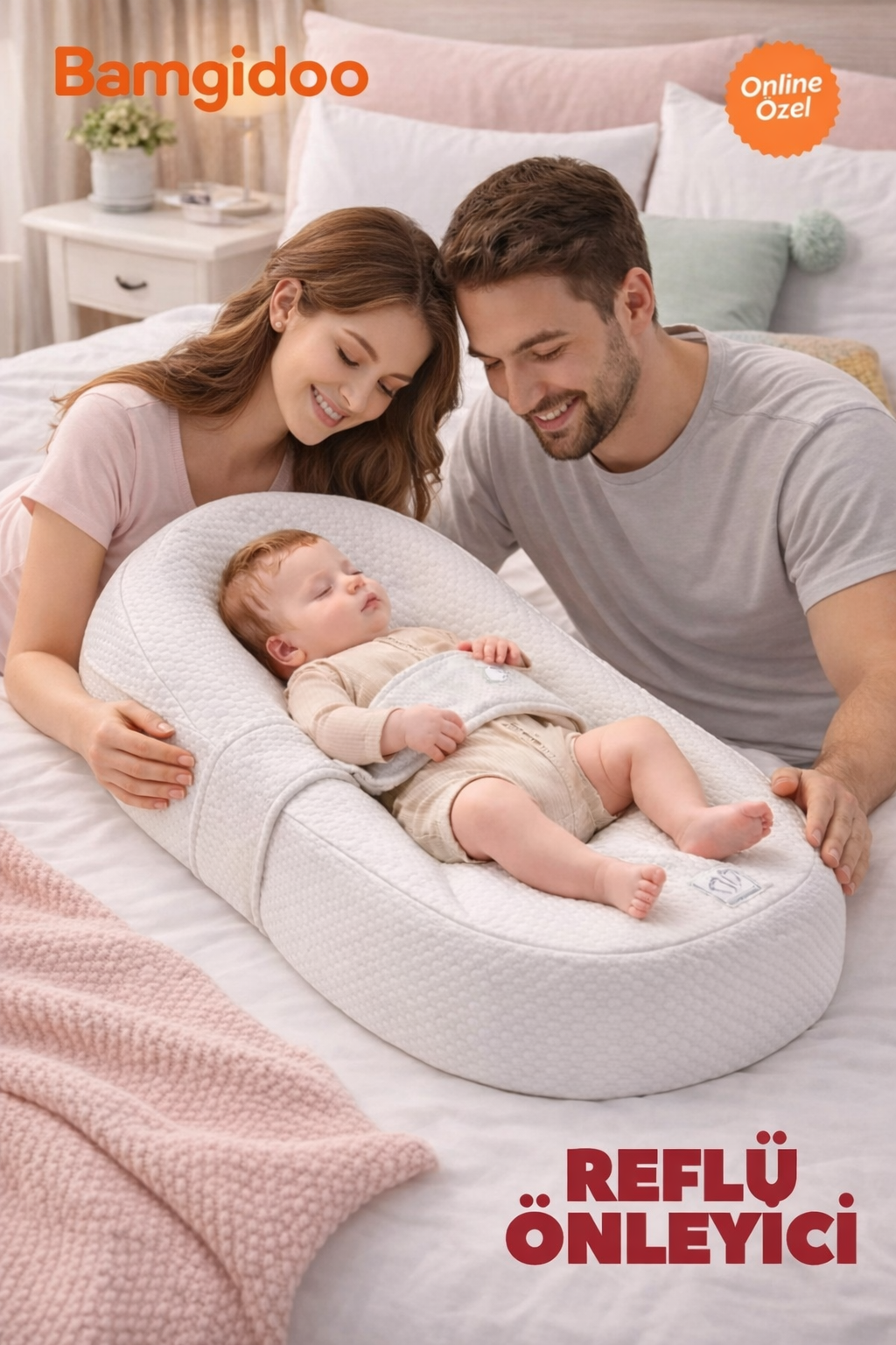 Bamgidoo Premium Yeni Doğan Önleyici Bebek Yatağı, bebeğinizin konforu ve sağlığı düşünülerek özel olarak tasarlanmıştır. Yeni doğan döneminde sıkça karşılaşılan problemlerini hafifletmeye yardımcı olan ergonomik eğimi sayesinde bebeğin baş kısmı vücuduna göre hafif yukarıda tutulur, böylece asit geri akışının etkisi azaltılır ve daha huzurlu uyku sağlanır.